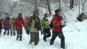 瀬川さんの案内に続きながら、40㎝ぐらいまで積もっていた雪の上を歩き奥に進んでいきます。